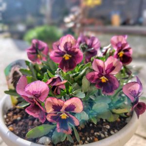 ✿.。*♡✿.。*♡本日の我が家のお花たち✿.。*♡✿.。*♡ ❀クレマチス 冬のメロディ 初めてクレマチスを迎えたのですが、仕立て方が分かりません🤔 ❀セリ フラミンゴ ピンクのリーフが可愛いですよ❦ ❀庭人さんビオラ 異邦人 渋い色合いです。 いまのところ1番花付きが良いかも。 ❀庭人さんビオラ ❀寄せ植え〜