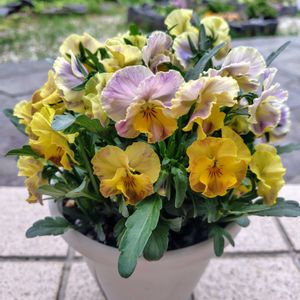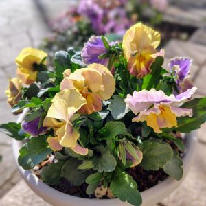 ✿.。*♡✿.。*♡本日の我が家のお花たち✿.。*♡✿.。*♡ ときめきビオラ バタースコッチ ビオラ アイクルール 庭人さんビオラ✕2 本日強風なり🌀 根元から折れそう(눈‸눈) 暖かい日差しなのに、風が強くて庭作業中止です。