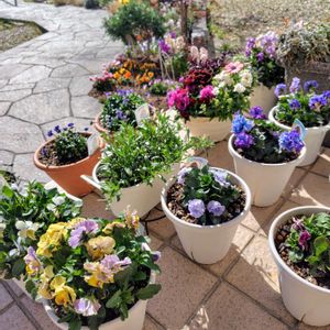 ✿.。*♡✿.。*♡本日の我が家のお花たち✿.。*♡✿.。*♡ パンジービオラ達の終わりが近づいてきました。 花数が減ってきたコ、徒長して暴れてきたコ。 連日の強風に煽られ、だいぶ傷んできてます🌀🌀🌀 少しでも長く咲いてくれると良いなーっと思いながら、ちまちまと花柄摘みに勤しむ日々です。