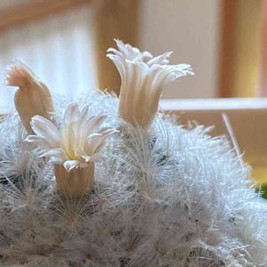マミラリア 白星の花 こいつはふわふわ過ぎてどう分けていいかもわからないから年々巨大化していっている(⌒-⌒; ) 最初は7.5センチ程度の鉢で余裕だったんですけどね( ̄▽ ̄;) 初めて花を見たけど白色でマミラリアらしい花だと思った(∩˘ω˘∩ )♡ 自家交配するのか謎だけど筆でこちょこちょしてみてます、、、どうなるんだろ?