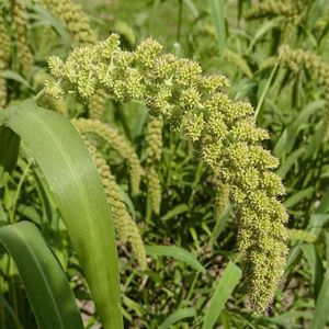 粟(アワ) イネ科エノコログサ属の多年草。ユーラシア全域で古くから栽培されてきた雑穀で、エノコログサから生育されたと考えられる。原産地についてはいろいろな説があるが、紀元前5000~4000年には黄河流域ですでに栽培されていた。日本でもかなり広く栽培されていたが、現在は少ない。アワにもウルチとモチがある。花期は7~8月。花序は円柱状で、成熟すると黄色~黄褐色になる。五穀(イネ、ムギ、マメ、キビ、アワ)のひとつで、胃腸の働きを整え下痢を止める作用があるとされる。 出典『野に咲く花』