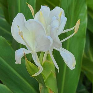 ジンジャー 和名:ハナシュクシャ(花縮砂) 花言葉:「あなたを信頼します」「豊かな心」 「慕われる愛」 香水にも使われる魅力的な甘い香りは 夕方になるほど強く 辺りに漂います。