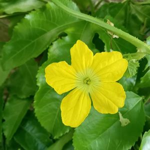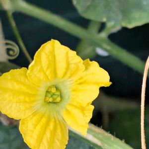 おはようございます☀ 今日のお花💚 鉢植えのメロンが、元気です。 小さな実もできています。