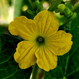 メロン🍈今日のお花(過去pic) ①2021年5月の誕生日に娘から、マスクメロン🍈が送られてきた💕 ②食べた後、種を蒔いておいたら、 7月に発芽🌱 ③10月ニョキニョキ茎が伸びて、大きな葉っぱとお花がいっぱい ④黄色のお花をアップで ⑤雄花と雌花、横から見るとわかります 10月に、せっせと人口受粉して実がなるのを夢みたけど、我が家のベランダでは、結実しなくて、ベランダでマスクメロン🍈の夢は儚く散りました😭