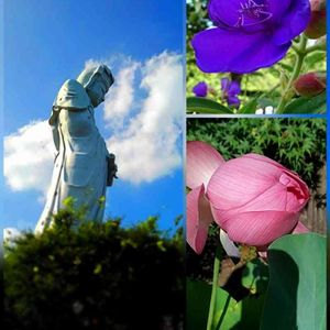 高崎観音初めて行きました! 正式には高崎白衣大観音 近くの喫茶店の前に咲いてた蓮とノボタン