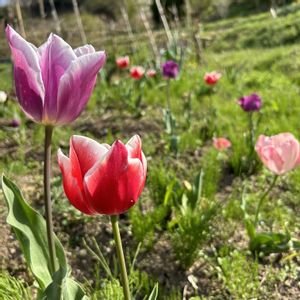 畑のまわり 先週来た時はまだまだ準備中だったのに きのうはあちこちに紅色の花を咲かせていました。 緑の中に色🔴🟡⚪があるとうれしい🤗