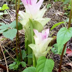 今日は畑のお手伝い🐜 落花生のところで 🌿を刈ろう方向転換した時 なにやらピンクと白いものが視界の隅に入った! 🧠ナニ? 🧠梅の木の下にはなに もない 🧠きっと、お菓子の袋とか誰かが捨てたごみよゴミ! 色々浮かぶ考えを振り切り、鎌を動かし、籠が抜いた🌿でいっぱいになったので梅の木の方へ捨てにいくと🤩 あるじゃん!あるじゃん❗️ 籠ホッポリ投げで 🤳🌹 (´・∀・`)~ 掃き溜めに鶴😃ってこんなのいうのね! 昼御飯のとき姉たちに見せると 🧔「ああ、ウコンだっぺ!」って✨ 綺麗なお花です😉 梅の実のなる時期に何年もきてるのに、「はじめまして」でした。