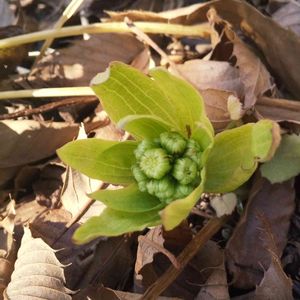 カラスビシャク 昨年も生えていた所に 今年も生えていた😄 本数も増えている。 葉の基部に珠芽(ムカゴ) が着いてる