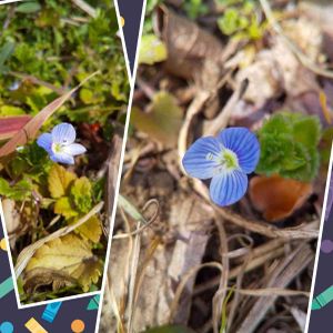 左:オオイヌノフグリ右:フラサバソウ 畑の周りの陽当たりが良いところに隣り合って咲いていました😃 もう春✨🌸✨?!🐛