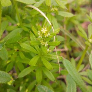 ヤエムグラ(八重葎)の花が咲いていました😃 アカネ科の越年草 畑の廻りに群生しています。 薄黄色の直径5mmほどの小さな花を咲かせます。 茎は四角く下向きのトゲが生えていて触るとベトッと感じます😵 4~7枚の葉が輪生します。 一昨年、この葉の付き方に興味をもったことが名前を調べるきっかけになりました🧐