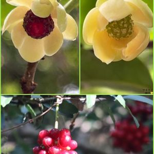 台風の風雨が強くなりしたが 今日2枚目は咲き始めた サネカズラ🌿🤍🔴🤍🌿 和名−サネカズラ(実葛) 別名−ビナンカズラ(美男葛)🌿 マツブサ科サネカズラ属の 常緑つる性木本🌿🌳🌿 つるを切ると粘液が取れ江戸時代には、この粘液は鬢付け油で(今の整髪料)それ使ってぼさぼさ頭を櫛でとかし整えたので「美男葛(ビナンカズラ)」の別名が🌿 基本的に雌雄異株で ①艶やかなこの子は雄花🌿❤️🌿 ②こちらは清楚な雌花🌿🤍🌿 ③丸い蕾も可愛い🌿🟢🌿 ④蔓性で巻き付かれると大変そ😅 ⑤秋には雌花が赤い実に🌿🔴🌿 →時計回りに熟す様子🔴🟢🔴 最後はサクランボの様で12月には少し甘くなり鳥が食べ 種が運ばれるそうです🦜 🏷白い貴婦人✨ 🏷金曜日の蕾たち 🏷煌めきの金曜日 ①②③④一昨日の森林公園で🏞️ ⑤いつもの森林公園で🏞️ 2022.11.12〜2023.12.16