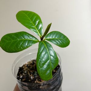 モモタマナ② 同じく2021.11.6の子です。 こちらはミルミル大きく葉も増えていったので、明らかに2つの大きさは違うと思われますが春まで待ちます。 主人は水に興味があって、モモタマナの葉で水質を作りたいそうです。