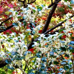 赤と白の競演 モミジと銀木犀 2022.11.9の藺牟田池の湖畔〜 銀木犀の甘〜い香りに包まれました˚ ༘♡ 10月1日、東京実家近くの駅前は金木犀と銀木犀の甘い香りに包まれていましたが、 10月10日にはお花は無く、金木犀の季節は完全に終わっていました! 東京から遅れること1ヵ月以上、 ここ藺牟田池で 今年2度目の銀木犀の香りに包まれた事に感動しています(*´˘`*)♡ 九州の金木犀・銀木犀はかなり遅いんだっ 今頃気がつきました!!