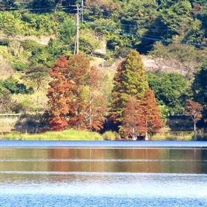 2022.11.9 藺牟田池〜 池の向こうに ラクウショウの紅葉🍁