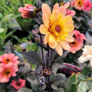 小輪多花ダリア ブロンズハート サイレンティア。 HCで発見したけど買うのは断念。 銅葉が素敵。
