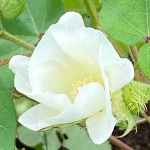 今日のお花 ✤ワタ✤ 今年初めて育てます🤗 白くて優しいお花😍 種を埋めるのが遅かったのでちゃんとワタになるのかなぁ〜?心配です😁