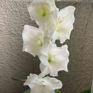 今日のお花、真っ白なグラジオラス ウエディングドレス👗のような純白の花! 文金高島田の綿帽子も、角隠しも白色 純真な心と、汚れない身で、あなたに嫁ぎます🤍 私は、もう遠い過去の話だったねー⁉️