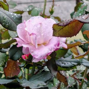 イマニワ♪ ①薔薇 ウォラトンオールドホール咲きました。ちょっとお疲れ気味かな?昨日は、まだまだ蕾だったのに、開くの早っ‼️ ②薔薇バーガンディアイスバーグ 小さいお花が咲きました。たくさん蕾をつけてます。 ③薔薇 ラ・パリジェンヌ 小さ〜い!夏剪定が早過ぎたかも。 ④モリモリ咲いてる暑さ知らずのルリマツリ。 ⑤ラティスに勢力拡大中の初雪カズラ。お花が乏しいい時期に、ピンク色の葉っぱが可愛いくて 朝晩は、涼しくなってきましたが、昼間は、暑くて薔薇にも昼中葉水をあげてます。薔薇は、蕾をたくさんつけてますが、綺麗に咲いてくれるかなぁ。 スリップスにやられてるのも、あちこちあって、薬剤撒こうかと思いつつそのままに。仕方ないかなって諦めてる私です😅