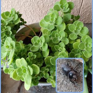 こんにちは👋😃 お友達から苗を、もらってきました ミントみたいな 香りがします😊 名前を教えて下さいね🙏 カブトムシのメスを発見👀しましたよ😄