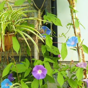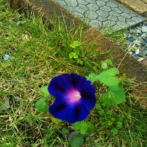周りの 野生化した朝顔が毎年元気です 白はひときわ小さな豆アサガオ(外来種) ↘️中央からライトを放つ様で好きです