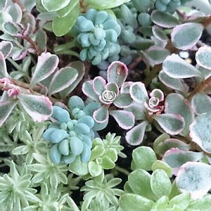 斑入りのセダム😊 タグに 這性もりっとタイプ って書いてあって笑える😁 お迎えして2ヶ月 本当に丘のようにもりっとしてきました😁
