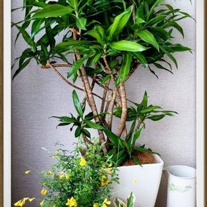 最近我が家の住人になった ソング・オブ・ジャマイカ 少し大きめの観葉植物が欲しいと話してたらお義母さんがわたしの誕生日にプレゼントしてくれました💕 インスピレーションで選んだこの子はドラセナの種類らしく花言葉は 幸福・誠実・開運・長寿 鋭く尖った葉っぱは家の中の邪気も払ってくれる効果もあるとか✨ 素敵な出会いに感謝💖 ちなみに手前のエニシダとペペロミアが乗ってる手押し車と右にある水差しは娘からのプレゼント😍