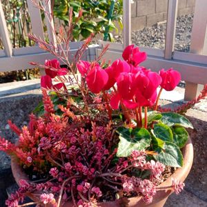 おはようございます☀ 良いお天気ですが風🍃が強いデス。今日から一変寒くなるようです。 皆さんお気を付けくださいね❤ 私はこれから一年で一番楽しみな狩りにでかけま〜す。 昨夜は楽しみで眠れませんでした😂😂🤣 寄植えは園芸店で見かけてマネッコしました。寒い冬に暖かくなるような真っ赤でまとめてみました❤❤❤