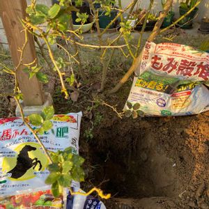 今日はやっと地植えのバラの寒肥を施しました😊 こちらはピエールの足元。 ピエールの根っこらしきものが見え隠れ。 30cm×30cmの穴を一株に対して2個~3個掘り、たい肥、肥料などを混ぜ混ぜしました。 地植えの薔薇4本に合計8個の穴を掘り疲れたのでコタツで昼寝をしました😁 今回は馬糞たい肥を使ってみました。 腐葉土も少し。 とりあえずこれが終わったので良かったです😊 また、春に咲いてくれますように😌🙏🌹