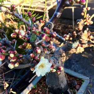 今日のお花🏷⸒⸒ウメちゃん 年末からポツポツ咲き始めています❣️ 大量に待機中のツボミちゃんはパンパンです❣️ コトリさんが来そうです🐦