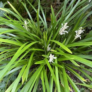 エントランスの植え込みに 咲いていた白いノシランの花 秋にはラピスラズリのような 美しい青い実をつける 🍀ノシラン キジカクシ科 リュウノヒゲ属
