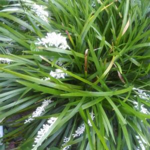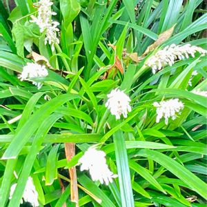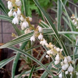 今日の2枚目😊 こちらも白い花🤍 お寺の水辺で咲いていました(*˘︶˘*).。.:*♡ ノシラン 学名をオフィオポゴン・ヤブランと言うそうで オフィオポゴンは、 日本語の「ジャノヒゲ」をギリシャ語で直訳した名前だそうです。ヽ(´∀`)ノ