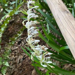 前からあり気にとめてなかった植物 かわいい白い花が咲いている なんという名前なのかしら? 熨斗蘭(ノシラン)とあんぱんさんに 教えていただきました