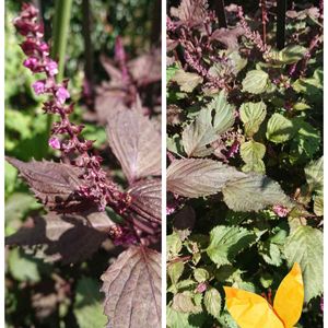 💐昨日のお花💐 🌿赤と青紫蘇🌿 両方ともこぼれ種からの自然栽培です(⌒▽⌒) 赤紫蘇は近年は梅干しを作っていないので紫蘇ジュースがメインですが 青紫蘇はほぼ毎日のように薬味や料理に使っています(*^^*) お友達にも鉢植えにしてプレゼントしたり 切って数人にあげています(#^.^#) 青紫蘇ジュースも作って飲んでいますが赤紫蘇みたいに華麗な色ではないからあまり高評価は無いです(笑) 秋口には花穂も種になりまた来年も自然栽培になりますね(笑)