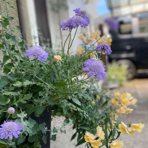 ①2022年に植えたスカビオサブルーバタフライが今年も咲いてくれました🩵 ②3鉢は今年のニューフェイス🪴