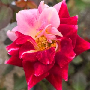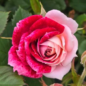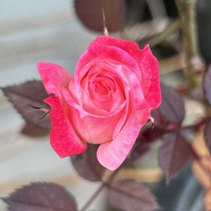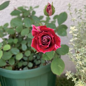 我が家のバラシーズン到来です! 1番に咲いたのは鉢植えの子です。 うちの薔薇のなかでは珍しいハッキリした 色の子です。まだ確認できないと思いますが花びらの外側が霜降りのような模様になっていて赤色が強く出たり、ピンクが強く出たりするハズ (ー"ー;)?ドーナンダロ