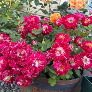 ミニ薔薇 「チェリーアイ」 5月7日pm4:23頃 ✧p📷qω•,,´)パシャ✧ ミニ薔薇のチェリーアイが咲き出しました。 蕾も沢山ついています。 少し絞りが少ないけどね。 ちょっと投稿が早かったかな? 花束💐の様に咲いてからが、良かったかな❓ 写メのチャンスがあればまた載せますね。 😃✌️🎶
