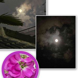 月がとってもきれい 左 17:50分の月 お買い物にて見上げた月🌕 右 11:00の月 お風呂上がりに見上げた月🌕 エントランスを飾る ストック嬢です 見上げれば 私を包む 女神さま🌙✨🌙