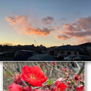 茜空 5:21分の西の茜色 茜空 吹き抜ける風 忘れるわ❤️ 茜色 木瓜のお花も 染まりけり❤️