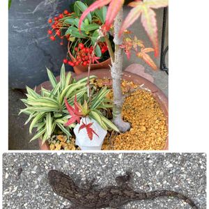 我が家の小さな秋 盆栽の 紅葉眺め🍁 父忍 下のは鉢を動かすと出てきた❓ イモリかな 先生〜先生〜これはイモリかなぁ〜♪ 友達いわく違うのでわと 色がこんなでは無いと❓ この子動かなくてまだ子供のような❓ スマホで📱アップしましたが 眼がどこにあるか分からないのです 私の眼が悪いのかもね! 苦手な方はは見ないでね🙇♀️