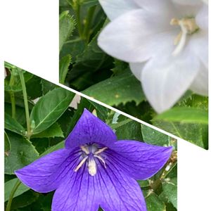 今日のお花桔梗です 秋の日に 桔梗咲きし 庭かざる💜🤍💜 白の桔梗は今は咲いてなくて 紫のは寄せ植えで咲いていました
