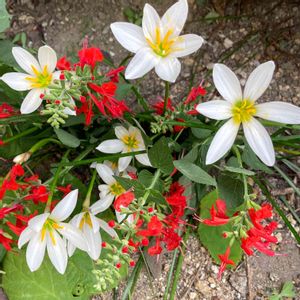 秋の日に咲ける日々草 白は我が家の子 赤はお出かけ先で 白い花 🤍❤️🤍 華やかな赤 ❤️🤍❤️ ひきたてて 🤍❤️🤍