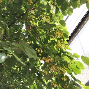 ボダイジュ(菩提樹)の花が咲いていました。 シナノキ科の高木で、黄色い花🟡をつけます✨ あまり目立たない色で、よく観察しないと分かりません👀 📷もあまりきれいに撮れていません(。-人-。)