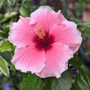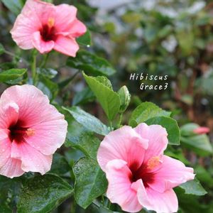 可愛らしく華やかな色あいの ハイビスカス🌺 NEWロングライフシリーズ グレイス3 3年目を迎えた株は、当初の頃よりもかなり大きく育っています (剪定が思い切れなくて…弱剪定) 濃い緑の中にパッと鮮やかな彩りが映える さすがの暑さには、ロングライフシリーズと言えども1日花… 涼しくなれば、2日〜3日花になるハイビスカス