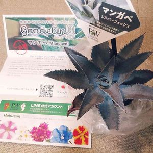 今日、ハクサンさんからPWマンガべが送られてきました😳❣️ アンバサダー当選したとのこと🎯✨✨ かっこいいお爪のアガベとマンフレダ交雑の新ジャンル多肉植物〜😍 シルバーフォックスの名前に相応しくこれからもっとシルバーの素敵な色合いになっていくそうです✨✨🎶 ちょうど一週間後は私の誕生日🎂 早めの素敵なプレゼント🎁になりました🥰