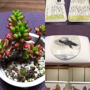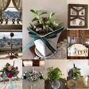 姉の家に遊びに行きました🚙 真ん中が多肉ちゃんのお土産✌️ 周りは姉の手作り品 素敵な作品がいっぱい💕❤️🥰