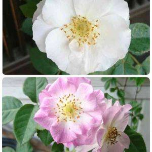 前々回上げたpic… オマケのバラさん♡ 初開花の時は上の真っ白な子が咲いたのですがサイドにあった蕾が開花したらピンク💞でした〜😲 ほんとのあなたはどっち?🤔