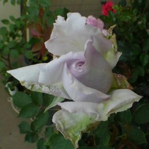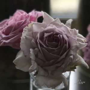 あー何とオソレオオイコトニ…ルシファー様に一目惚れ🎶 うちに連れてきたけど、一輪咲いだ後、こちらはずーっと変化無しですよー。 なので✂️家の中で‼︎ 咲いて~🙏 パールバイオレットって、凄く良い色💜🌟 凄く良い香り🎶🌟 真ん中のは茎が針金のようで薄い花びら、右のはしっかりした硬い茎で、花びらも厚いですね! そしてちょっとくすんだひらひらです。 スィートチャリオットも柚子もテーブルの上でクンクンがたまりませんね💖💗🎶