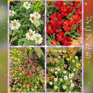 百日草のミニチュア版 ジニアたち 背が低く、たくさん咲きます‼️ ご近所や、お出かけ先の花壇など、暑い中🥵 あちこちで、植えられて、頑張っています‼️ 少しキラキラさせてあげました‼️