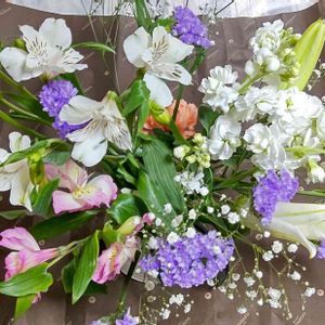 本日のお花 【 カスミソウ 】 沢山のお花に カスミソウを散りばめて 飾りましたよ🎵 お部屋が明るくなりました。