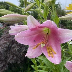 こんばんは 今日は雨☔ よく降りました 明日もかなり降りそうです 線状降水帯も出ているので 今後の雨に備えて下さい 夕方一時やんだので 庭と畑に 今日咲いたテツポウユリ 頑張って咲いてます 5本目の黄色のすかしゆりは上を向いて咲いたので 花びらが可哀想😢 スモークツリー 雨粒でキラキラです 畑のきゅうり🥒 毎日二、三本収穫できます きゅうりのトゲトゲがチクチクです 塩昆布と粗塩で浅漬け 飽きるまできゅうり🥒の浅漬け続きます😄